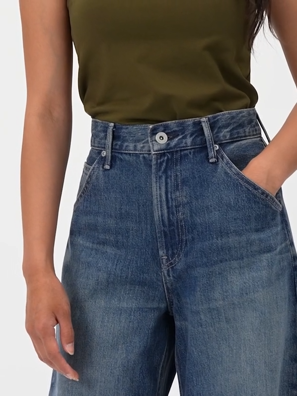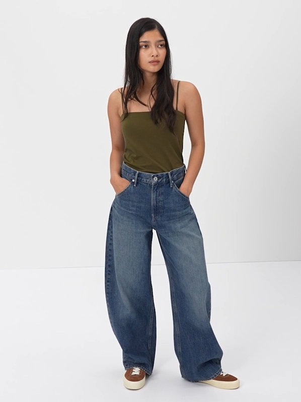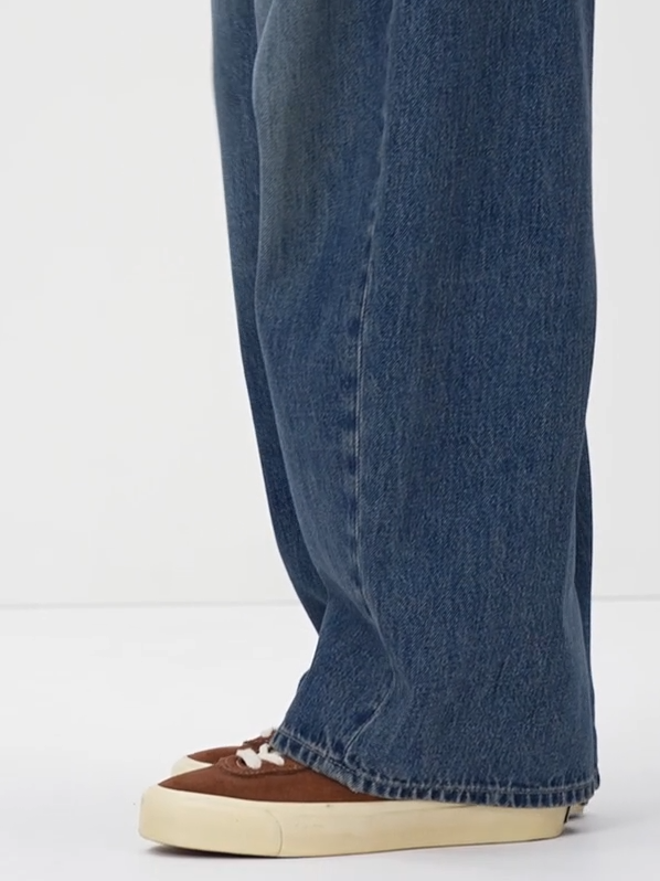 Baggy fits often risk making legs look shorter, but Uniqlo’s Baggy Curve Jeans do the opposite.